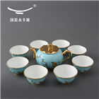 This collection has honorably served for First Lady banquet of G20 Summit-Hang Zhou 2016. The saturated turquoise coloration naturally simulates West Lake in charming morning, Intricate stem texture and blooming peony explicitly reflect most classic Chinese culture and aesthetic heritage. With modern-styled shapes and sparkling rich gold decoration, artistic heritage is revitalized and saluted in contemporary fashion and commonly shared in and beyond border.