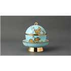 This collection has honorably served for First Lady banquet of G20 Summit-Hang Zhou 2016. The saturated turquoise coloration naturally simulates West Lake in charming morning, Intricate stem texture and blooming peony explicitly reflect most classic Chinese culture and aesthetic heritage. With modern-styled shapes and sparkling rich gold decoration, artistic heritage is revitalized and saluted in contemporary fashion and commonly shared in and beyond border.